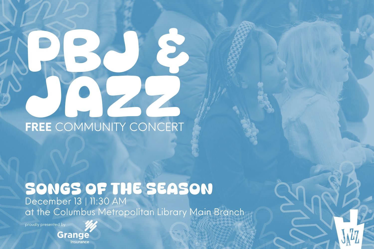 This holiday season just got a bit brighter with a free PBJ & Jazz community concert from us to you at the Columbus Metropolitan Library with the biggest band ever.